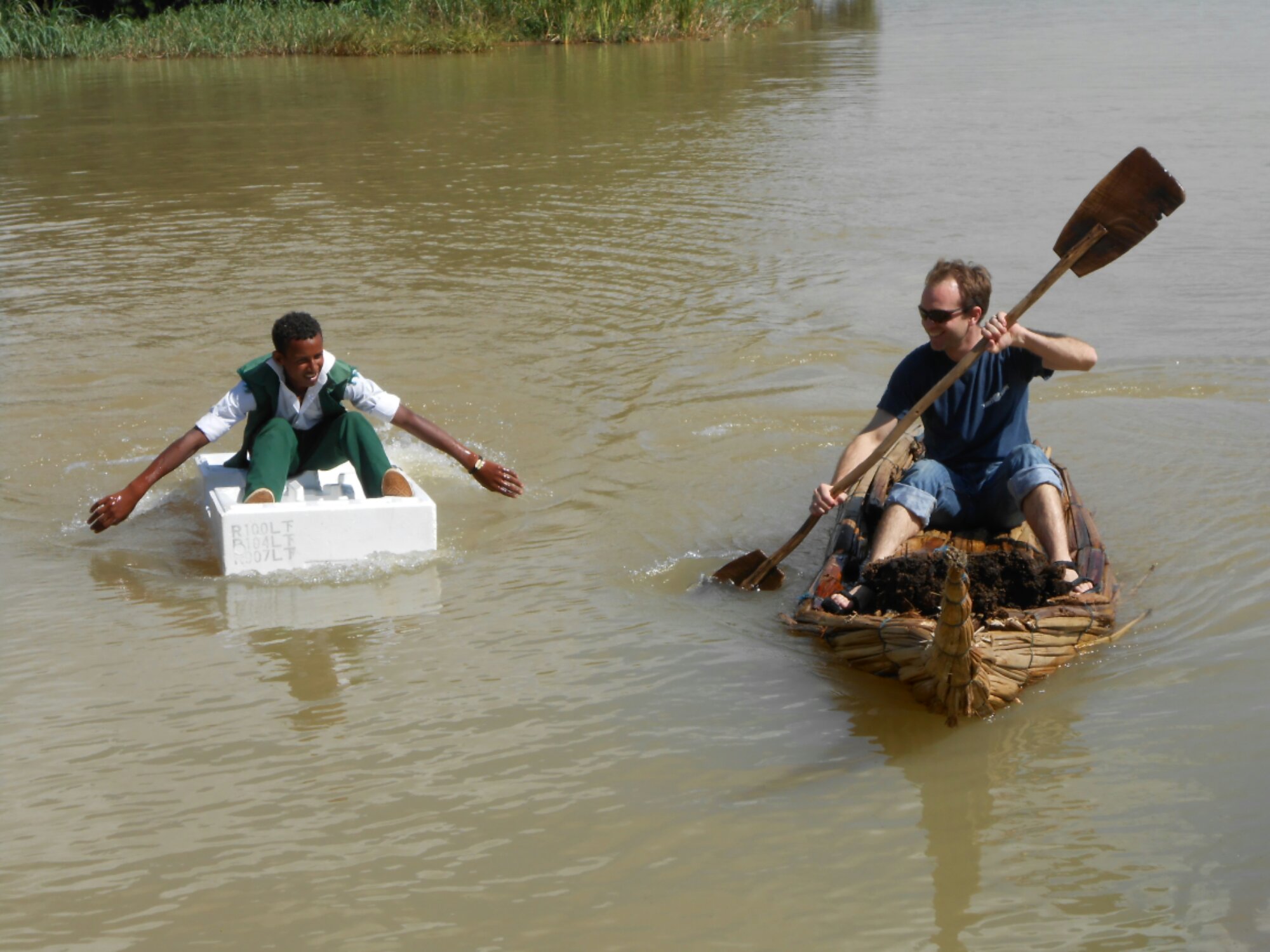 The colors in everyday life over there are amazing! I have always wondered how they get the spices in the bags to make those little mountain peaks and then hold the shape. Seeing hippos in the wild must have been surreal – Dom, remember the funny sound the hippos made on the “See and Say” toy when you were little? Do they really sound like that? Loved the pic of you in the papyrus boat, Woody. Somehow, I never doubted you would figure out a way to get in and paddle one. But the BEST is the kid on the styrofoam packing box. How cool is he? VERY cool!