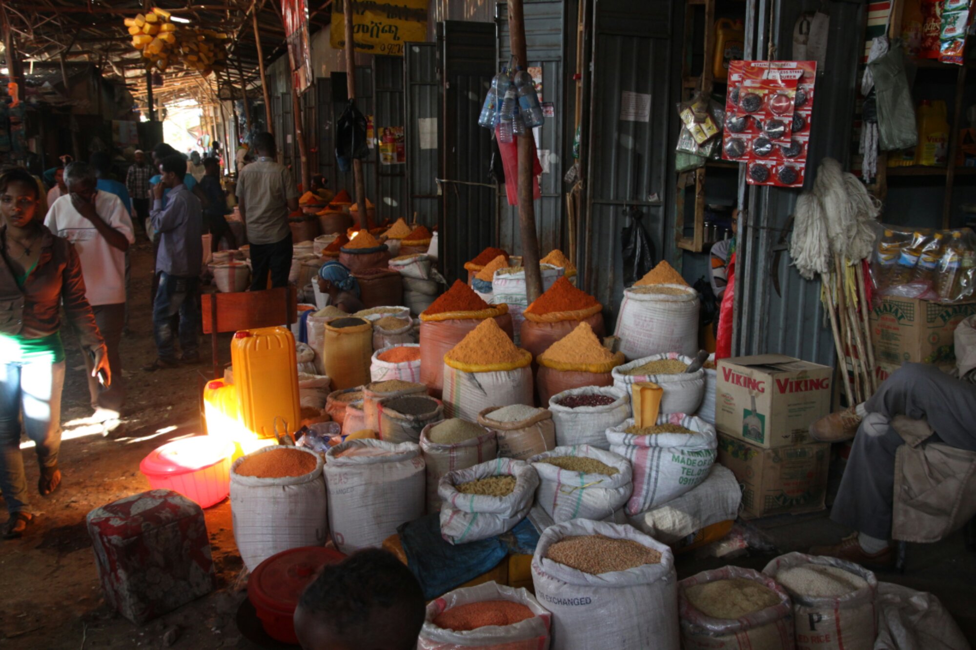 Later, we explored the large market in town. It was fascinating to see the variety of goods being made there. An entire aisle was devoted to making new things out of old tires including shoes, ropes and water bladders. Another area was occupied by metalsmiths making oil lamps from used cans and then there were the spices… amazingly colorful and fragrant. Finally there were several stalls with TVs connected to PlayStation 2s. Anyone can rent time on them for play, but mostly it’s teenage boys betting on who can win FIFA World Cup.