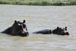 Between the second and third monasteries, we took the boat to the outflow for the Blue Nile to look for hippos. We were told it’s rare to see them, so I was focusing on the papyrus kayak loaded down with reeds when Dominique spotted the first one.