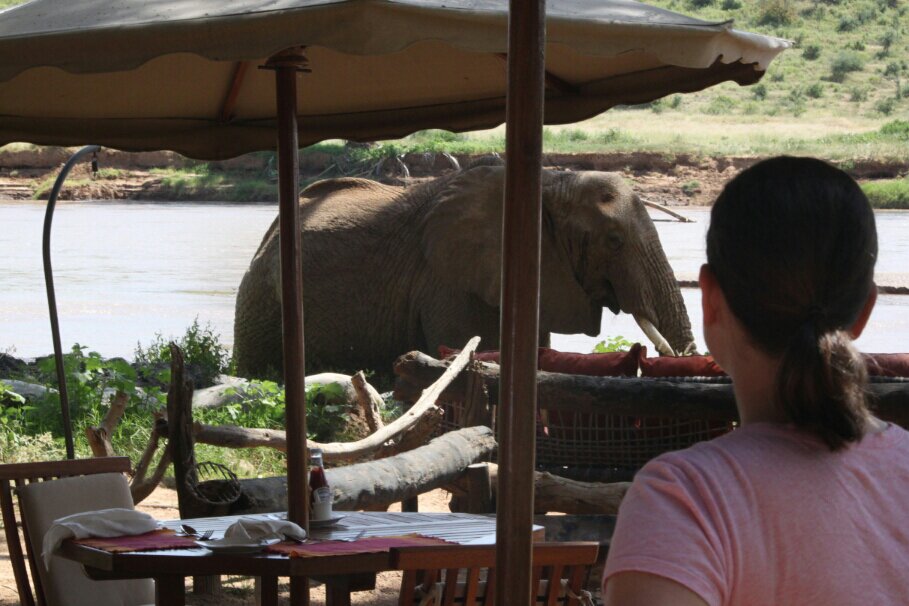 Yesterday we left Nairobi to start our safari. We flew to Samburu National Park on a small single engine plane with a pilot and co-pilot only. There was no divide between the cockpit and cabin and the snack cart for the flight was a plastic box with hard candies that the co-pilot passed back. It’s been a long time since I was on a flight that was this relaxed. It was great.