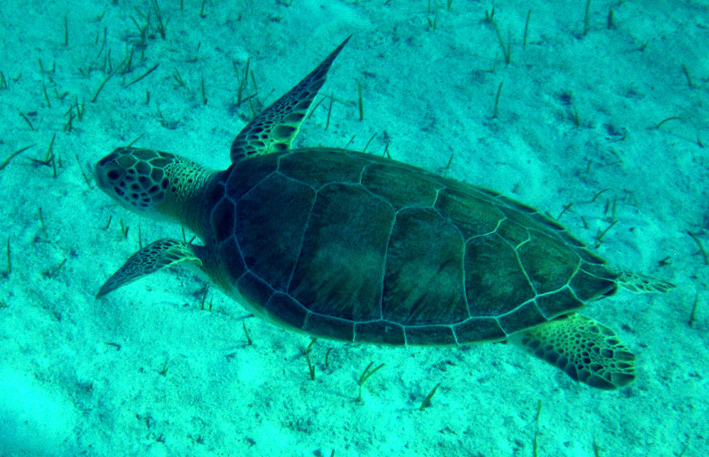 We stayed on reefs in about 30′ of water. There was no need to go much deeper and where we were, the only way to go any deeper would have involved digging. The first dive was at a site called Lobster No Lobster because this was the first site anyone had seen lobster migrate. Unfortunately, we didn’t see any lobster, migrating or not. We did see a barracuda, a lion fish and several Red Edge Goddess Nudibranchs. The best part was following a 2-3′ loggerhead turtle around the reef for a while. It was hard not to think of him speaking in the surfer accent from Finding Nemo.