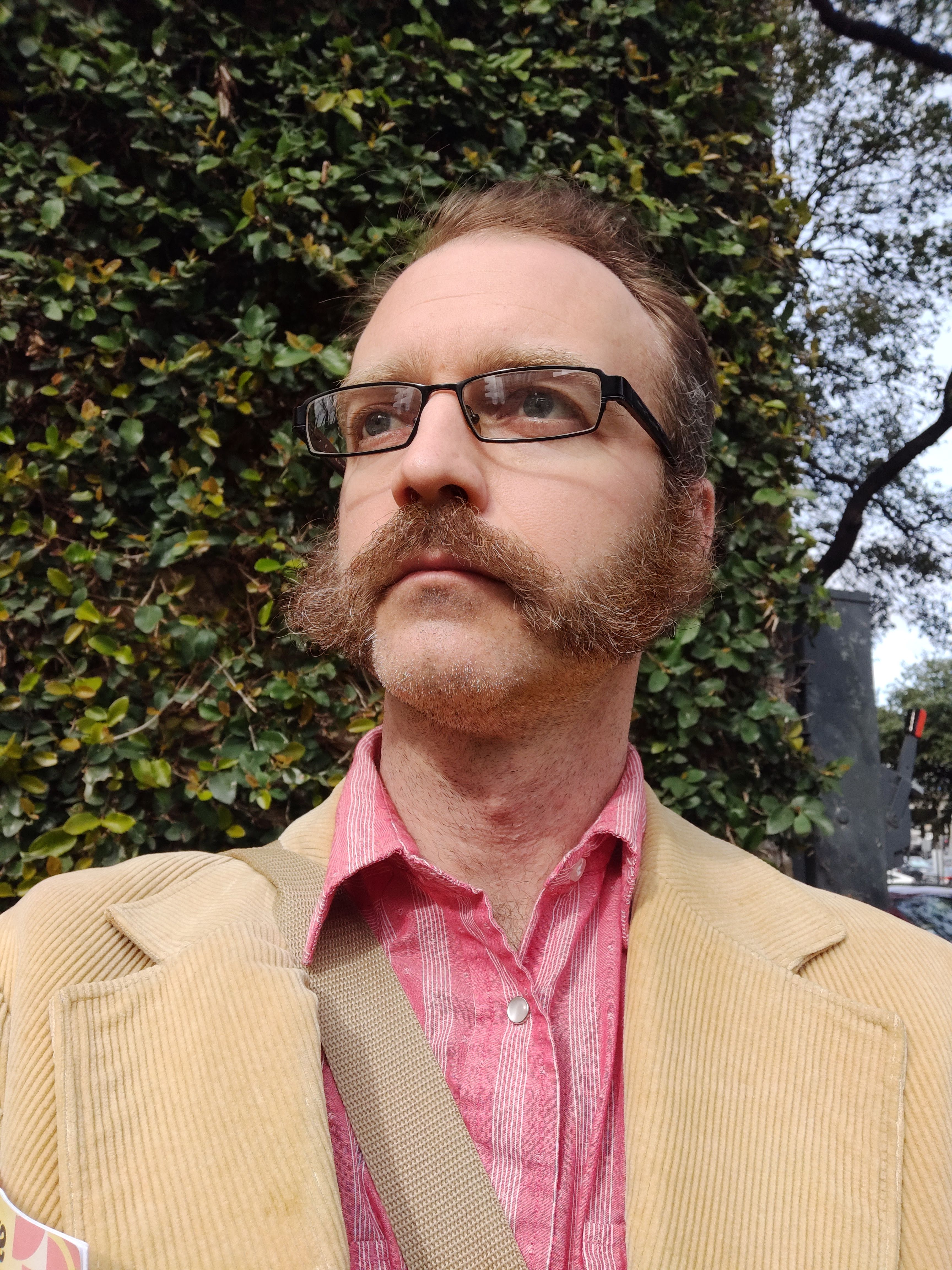 Years ago, some friends had a tradition of growing mustaches for the month. I think they started it in college but I never heard the origin story. One year, as March approached, we were sitting around a meeting planning promotional events for a non-profit we volunteered with and, during a lull, their upcoming mustache designs came up. Somehow we decided to turn it into an event called “Go Loud For Local”. Since the non-profit focused on promoting the local economy, we decided to encourage people to do something loud with their look during the month in the hope that people would ask about it and they could start a conversation about the importance of keeping money local.