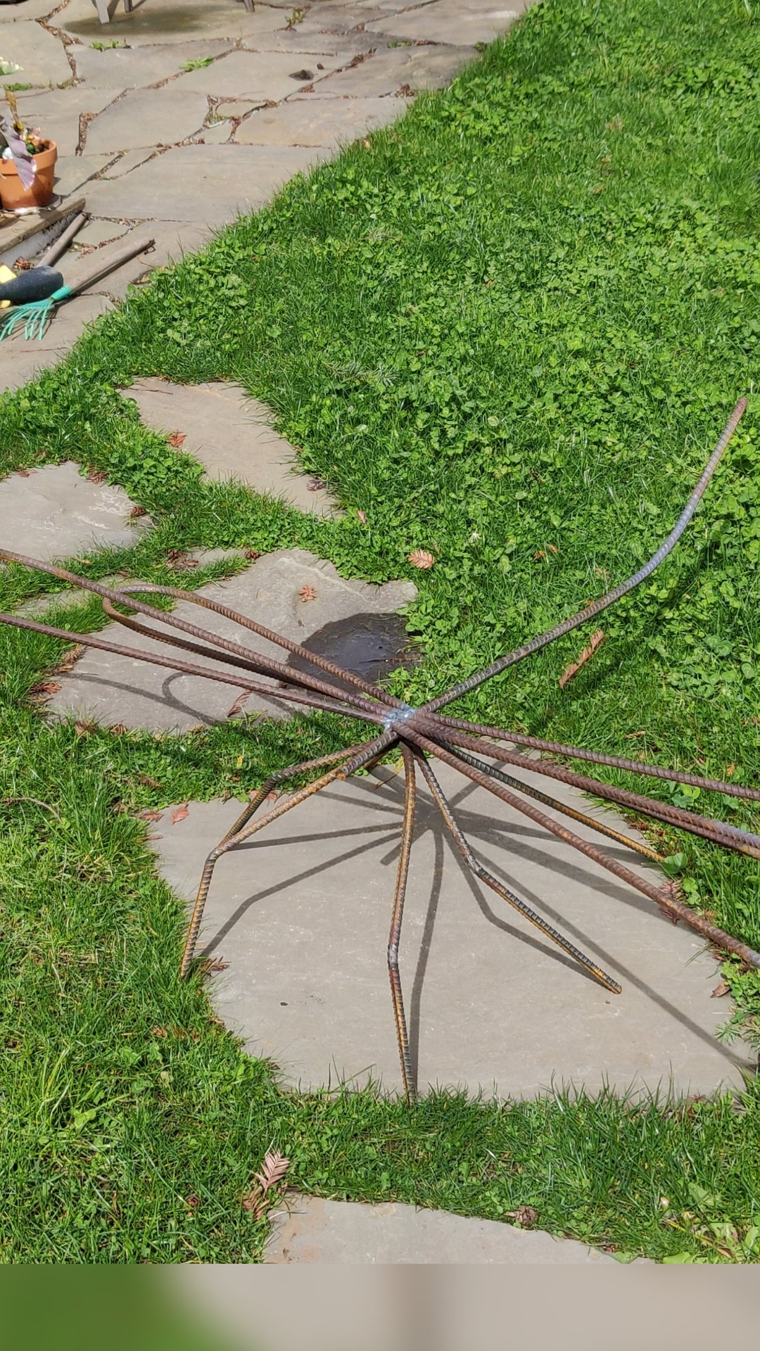 When a neighbor offers you 12x 20′ pieces of 1/2″ rebar, you need to find interesting things to do with it.