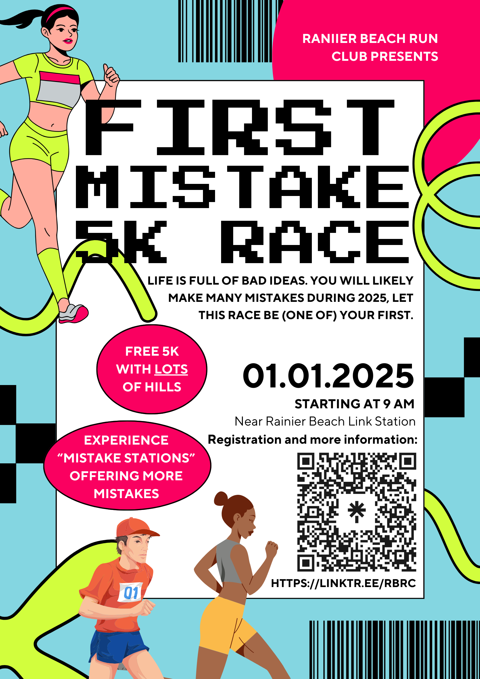 Life is full of bad ideas. You will likely make many mistakes during 2025, let this race be (one of) your first. What could be better than a free race on Jan 1? Let’s check-off as many mistakes as possible now. You know that outfit you haven’t worn since high school? That would be perfect for this race. Maybe eat a big greasy breakfast 30 minutes before the start. Did you party hard on New Years Eve and go home with a stranger? Bring that mistake with you, especially if they aren’t a runner. It’s gonna be “That Kind of Fun”.